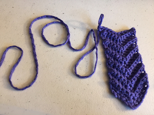 - Turn, 2 sc in back loops only of next stitch.