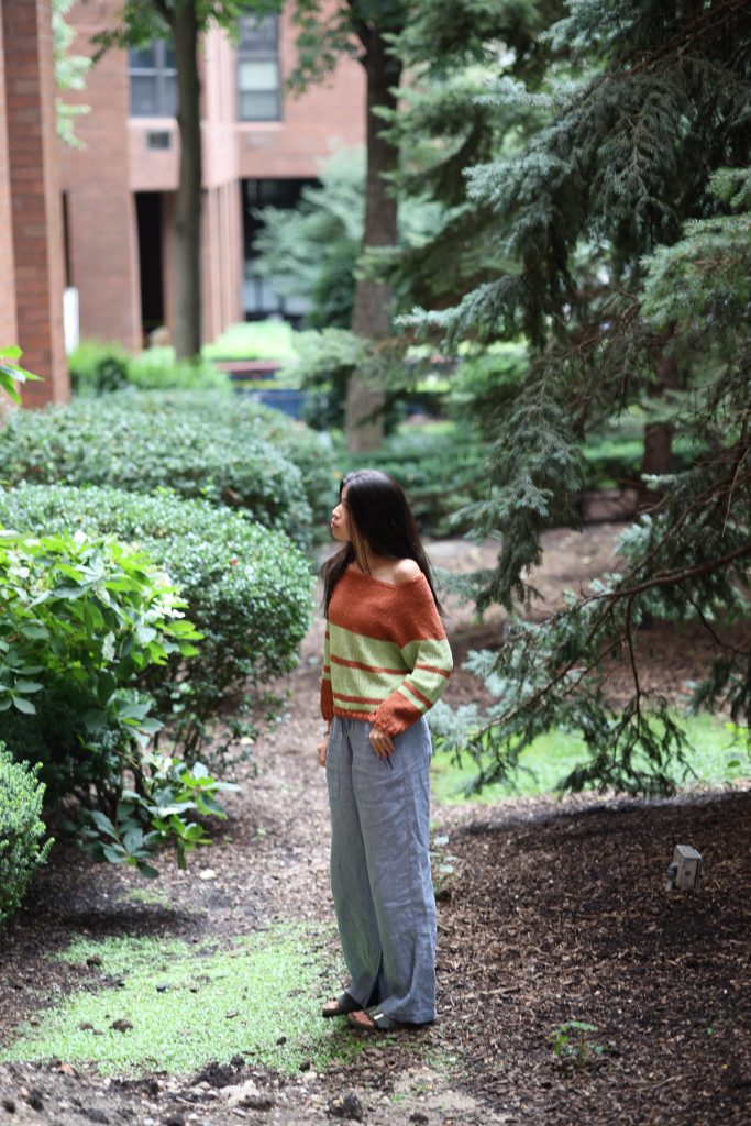 I knit my sweater up with a thicker cotton yarn. This gave my sweater a cooler feeling that is perfect for those colder summer nights and fall mornings.