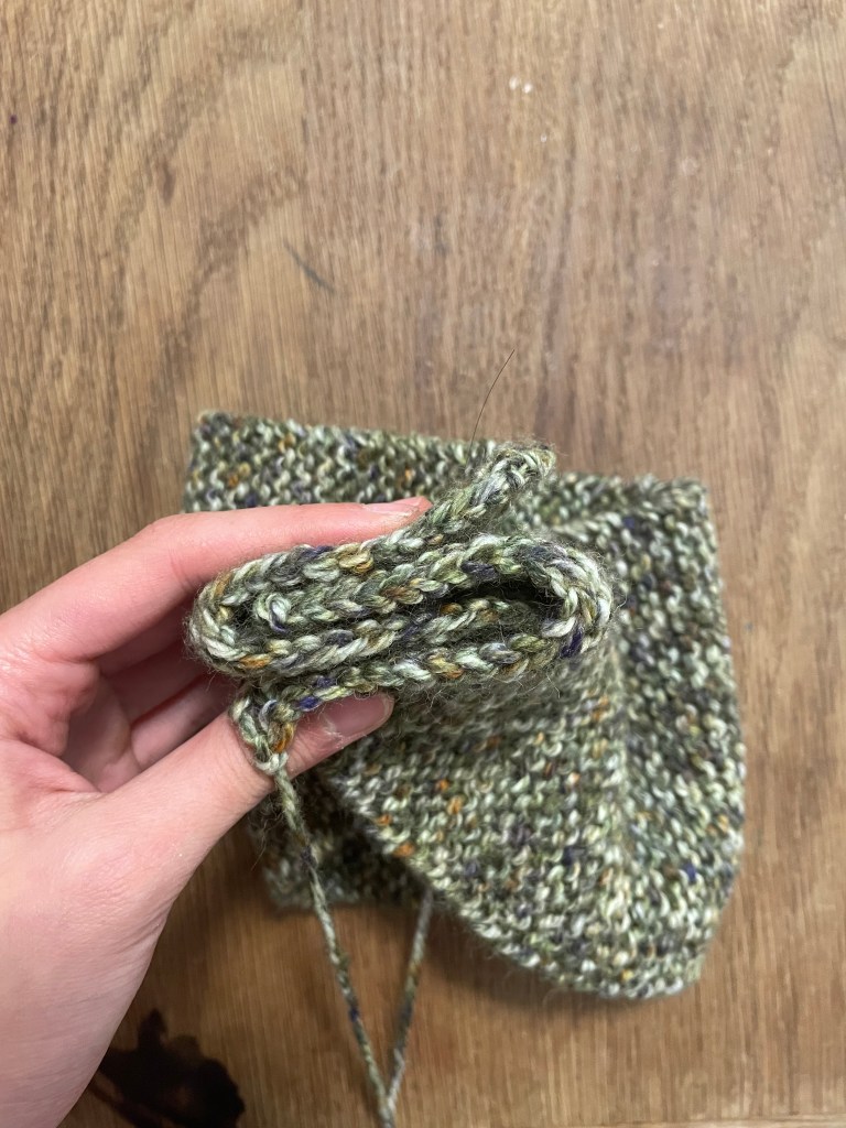 I used a fun, hand-dyed yarn for mine, but you can use any yarn you’d like! The simple, squishy garter stitch used in this pattern allows for little details — a special yarn, the center twist — to really shine.