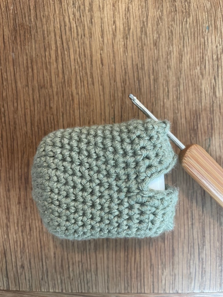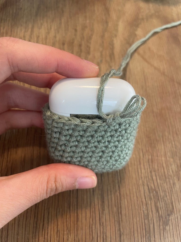 - Sc around until body reaches necessary length. Stop round at the center back of AirPods case. (PHOTO B)
