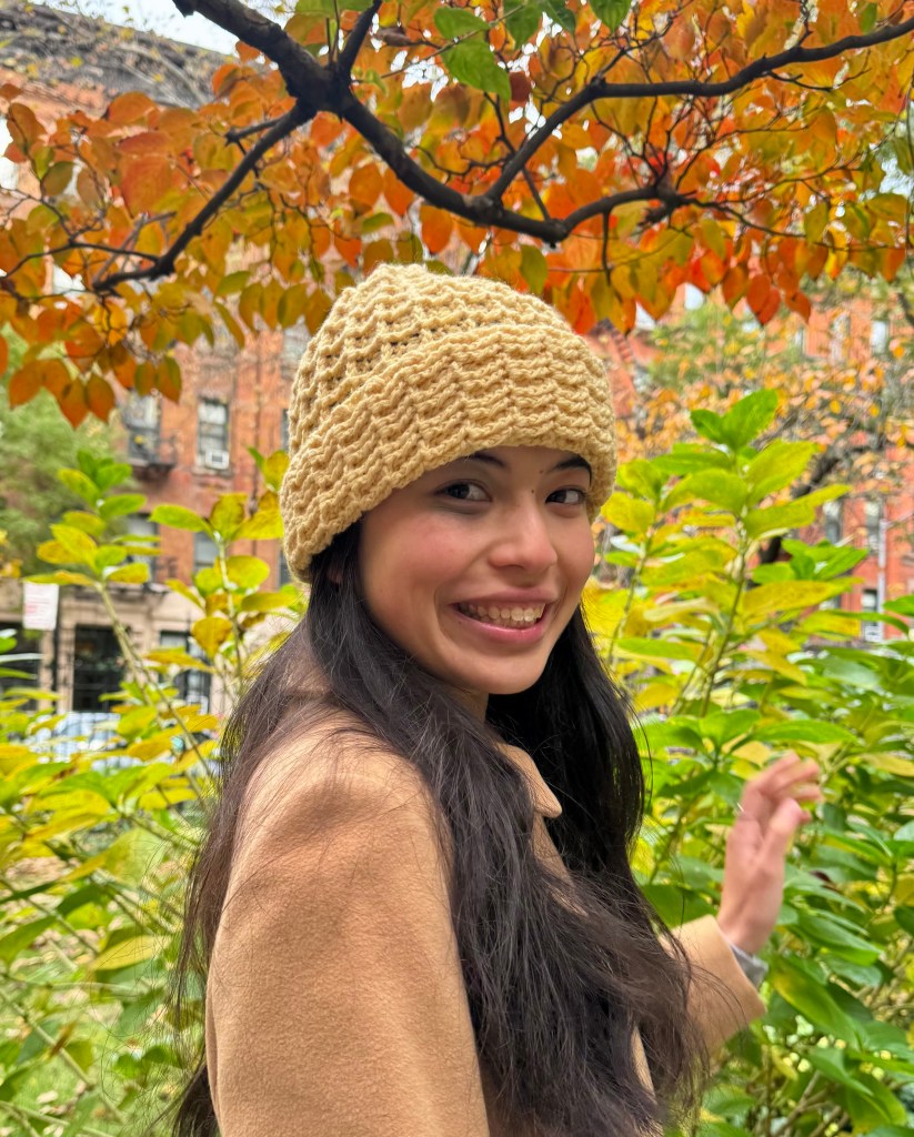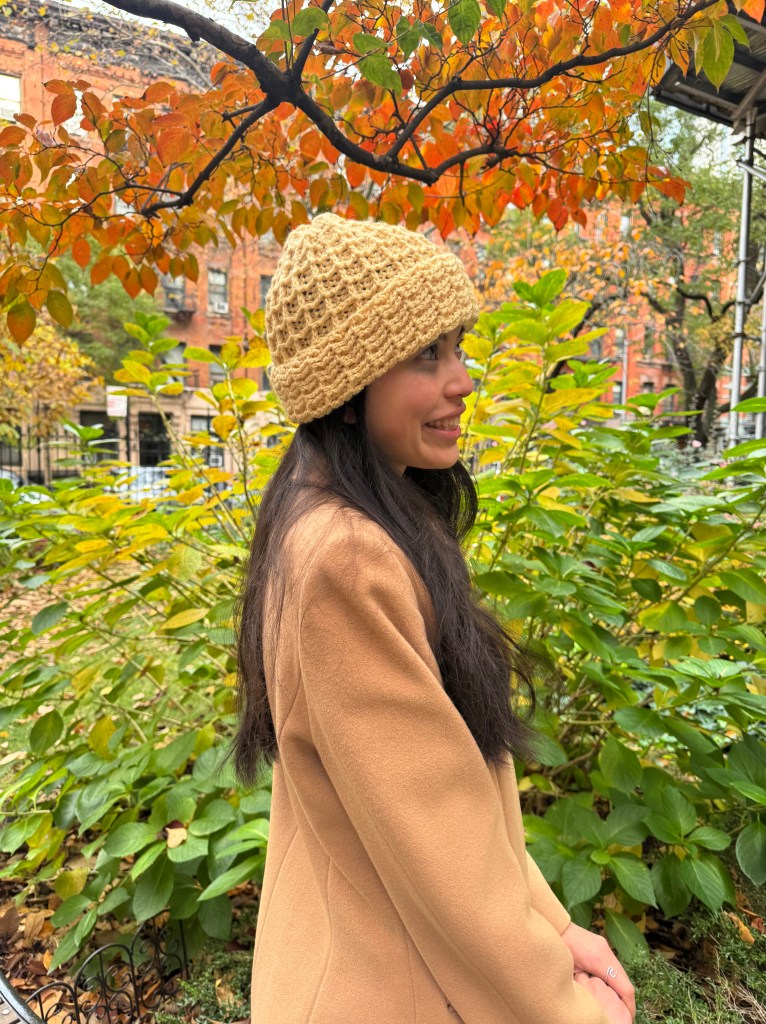 The Honeycomb Hat, like its predecessor (the Waffle Beanie), is worked up in the addictive waffle stitch. Although it looks complex upon first glance, the waffle stitch is actually a super simple stitch to learn. I would definitely recommend this project to adventurous beginners who are looking to branch out from plain old single crochet and double crochet!