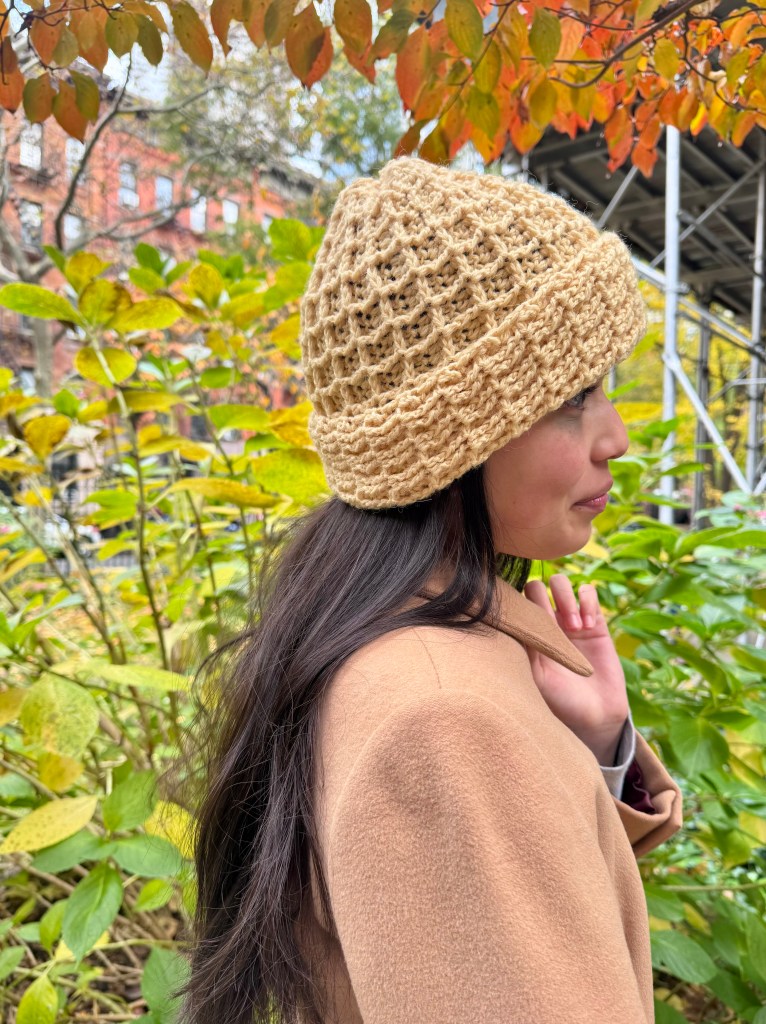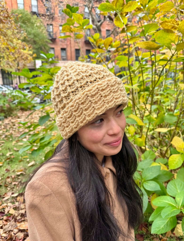 I grabbed a skein of this stunning butter-yellow yarn and started following the pattern, adding some modifications along the way (a more tapered top, a fold-up brim). When I finished my beanie, I decided that it was about time to give the Waffle Beanie pattern an upgrade. So the Honeycomb Hat is essentially the Waffle Beanie 2.0, written in an easier-to-read style with a few fit adjustments! (Plus: I made a video tutorial to go with it, so this pattern is completely accessible to beginners). I hope you love it as much as I do!